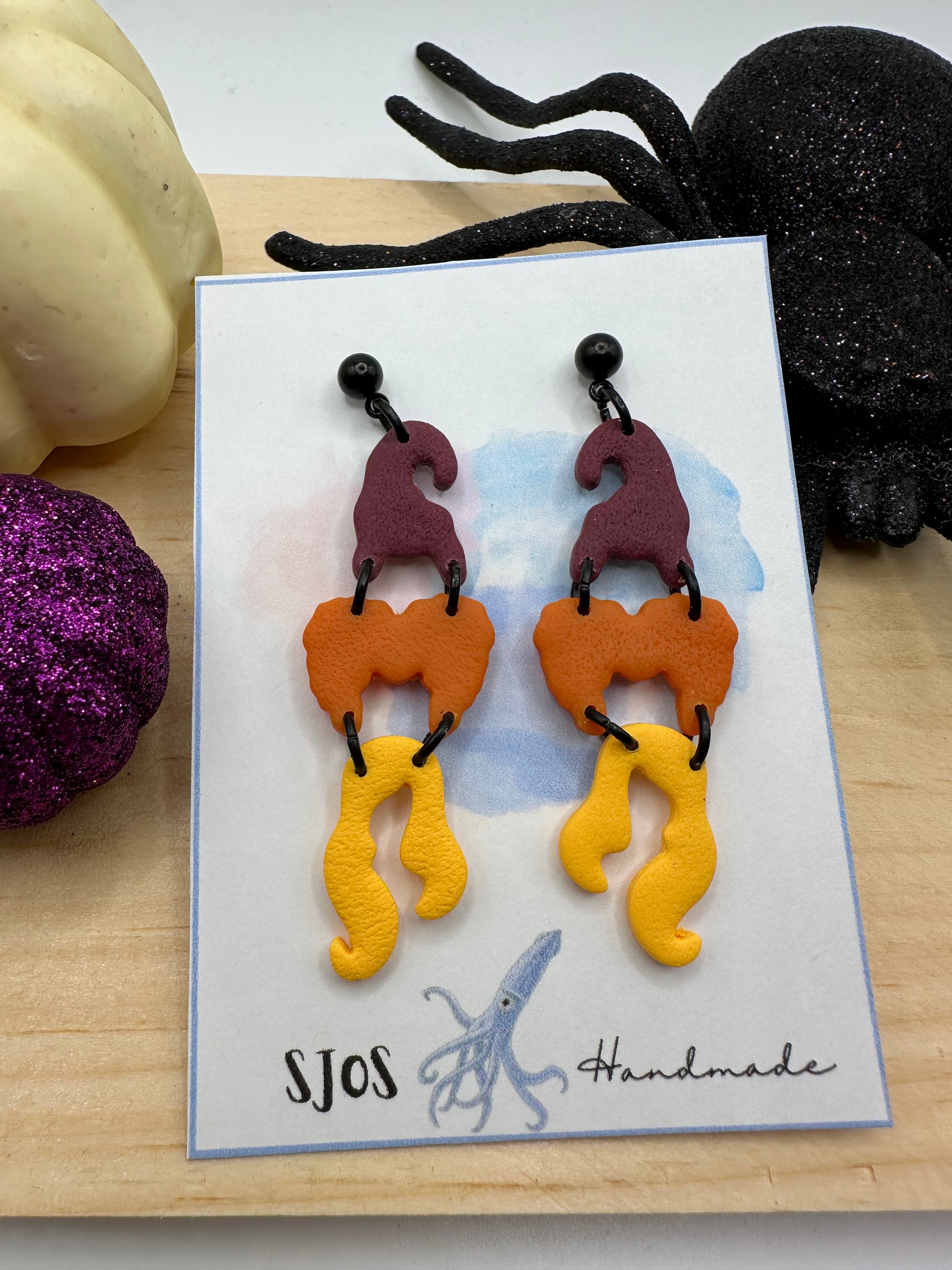 Lightweight polymer clay dangle set of our three favorite witches! Available in two styles