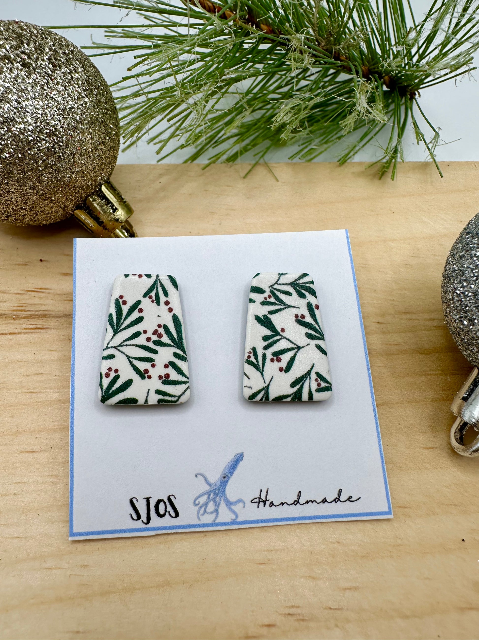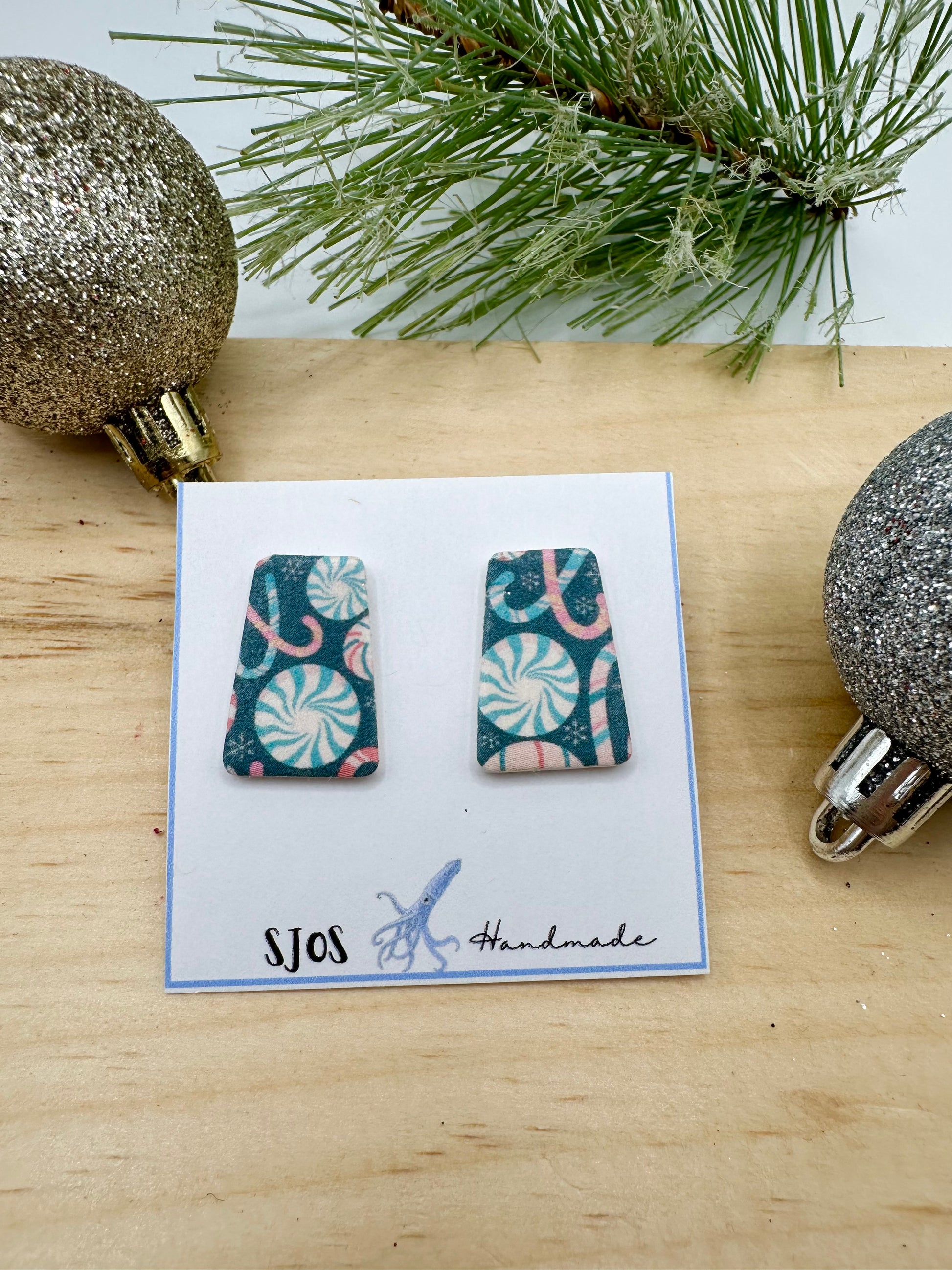 The Agatha- Lightweight polymer clay long trapezoid stud with various holiday patterns