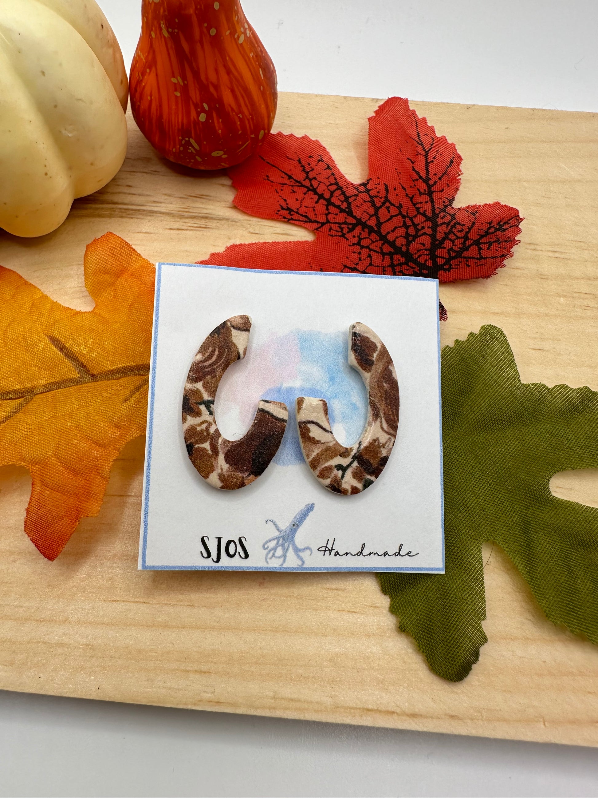 Lightweight polymer clay “C” shape mirrored stud earring with butterfly closure, available in various colors and textures