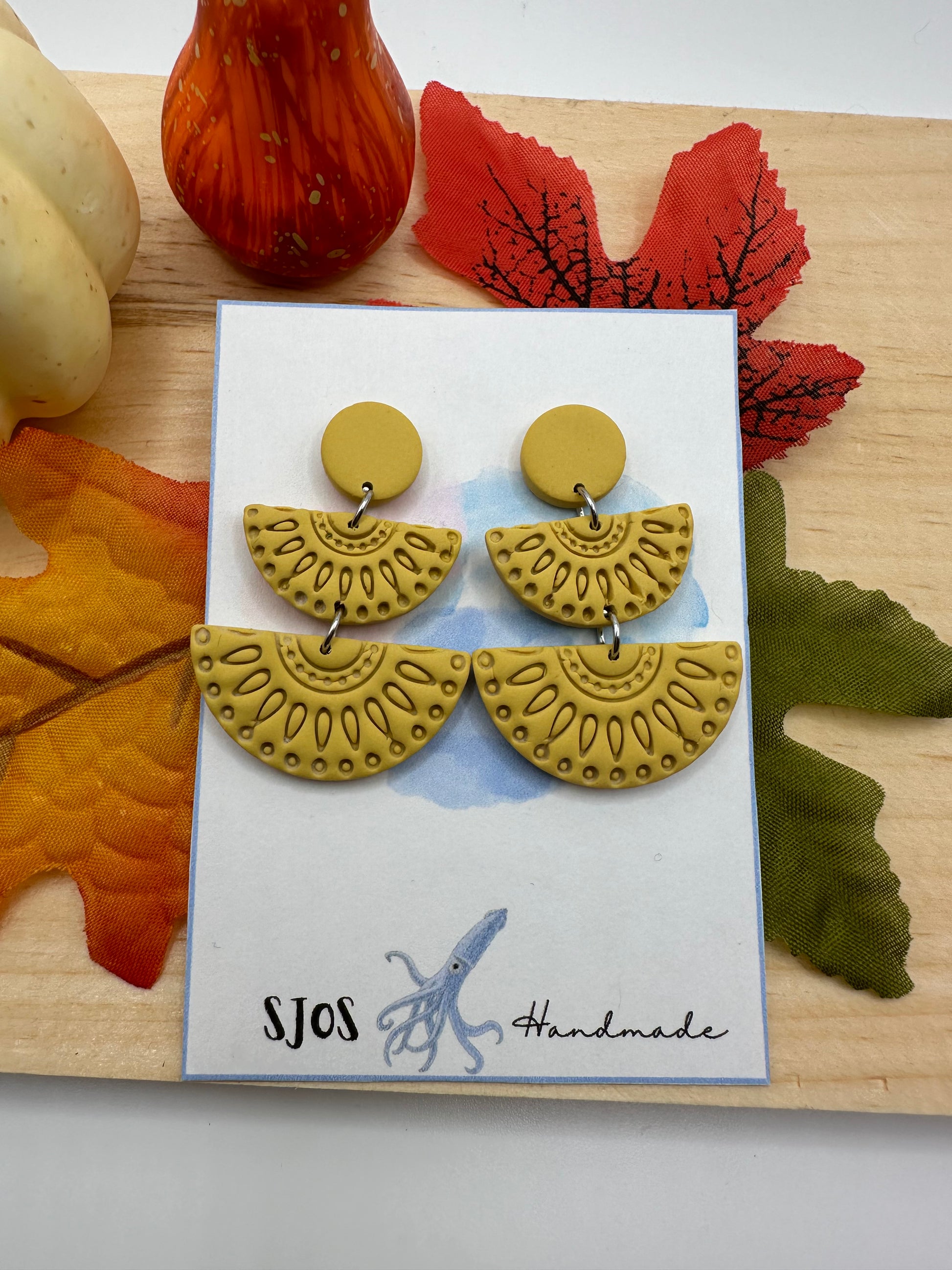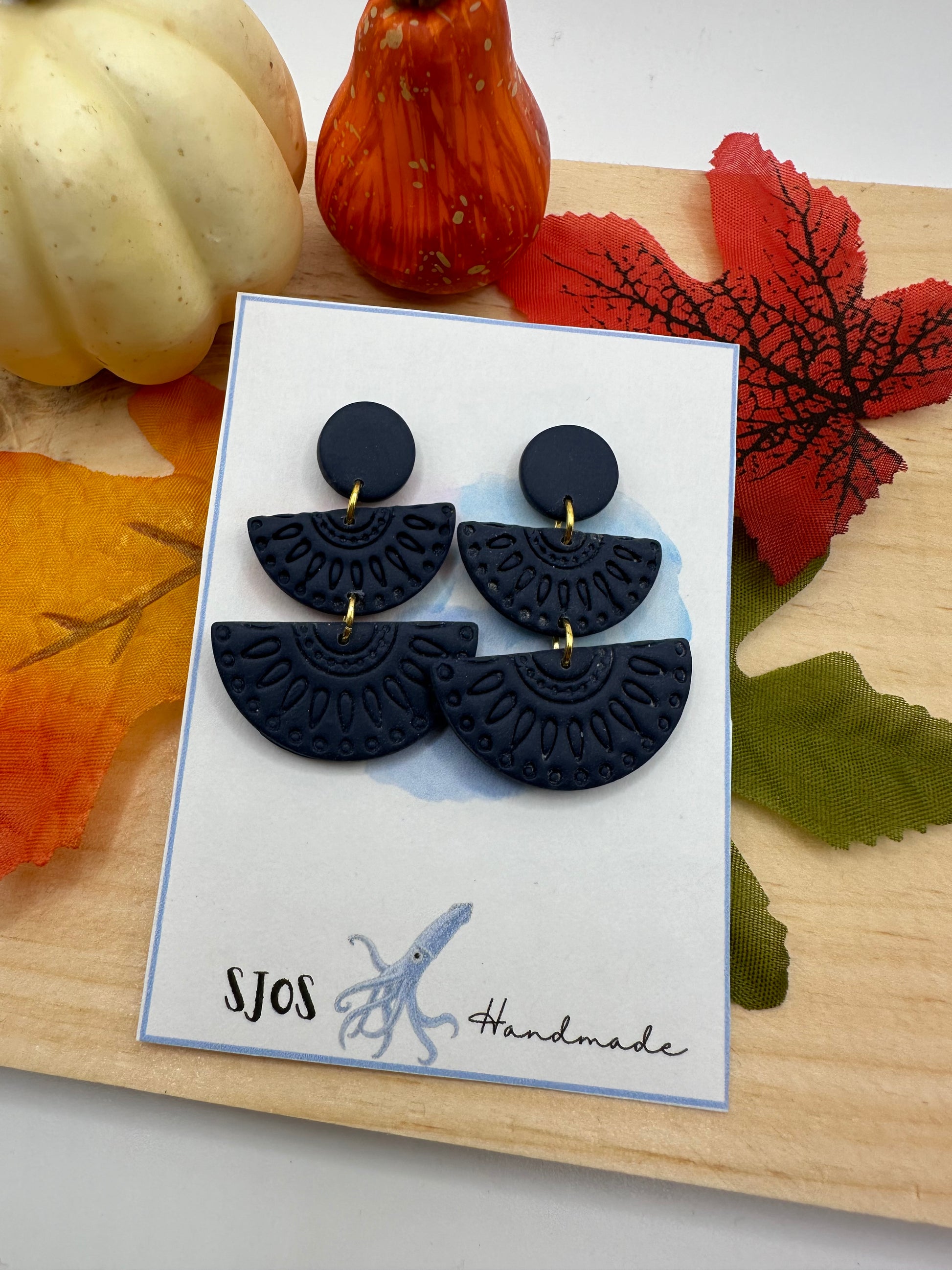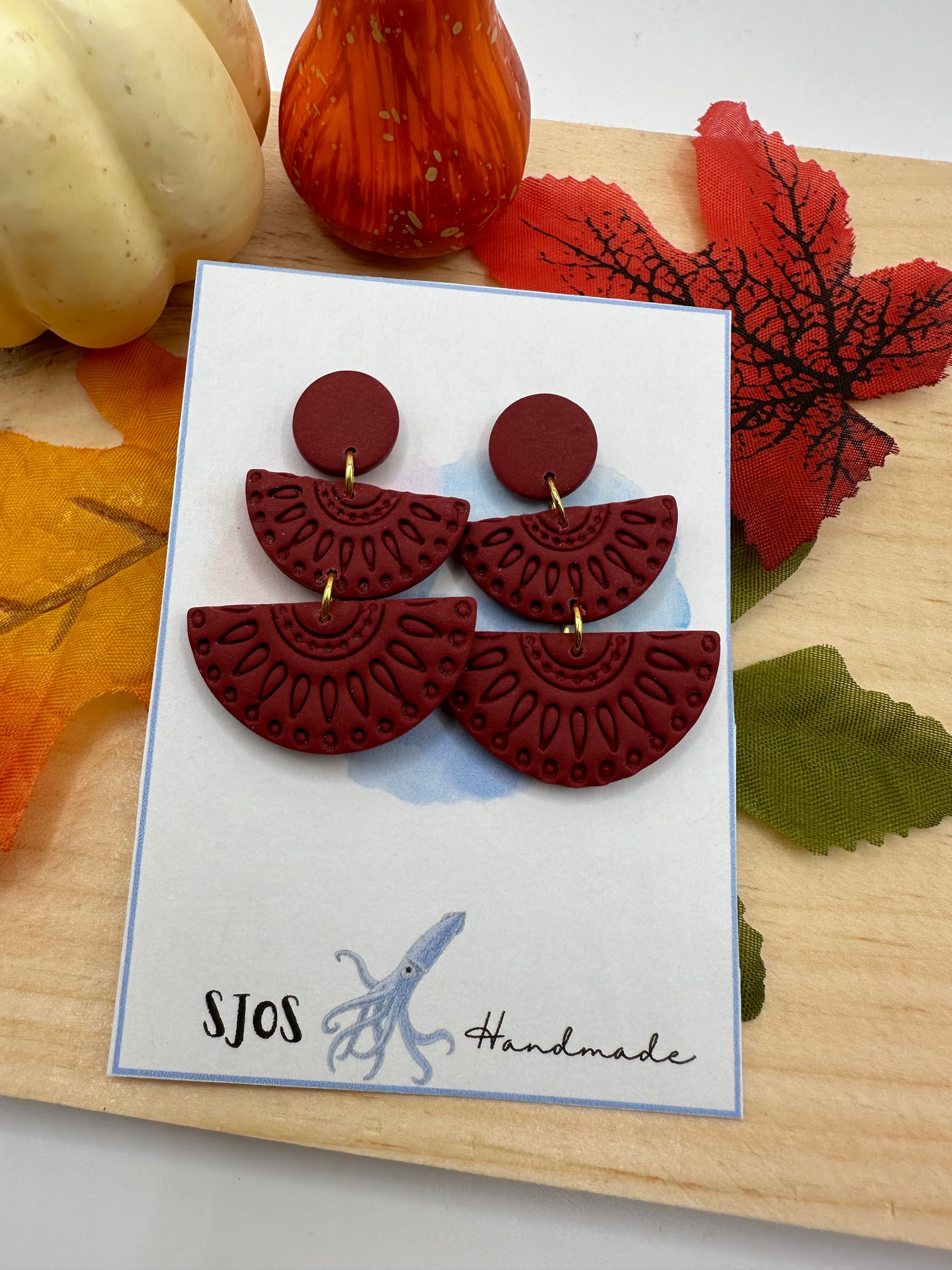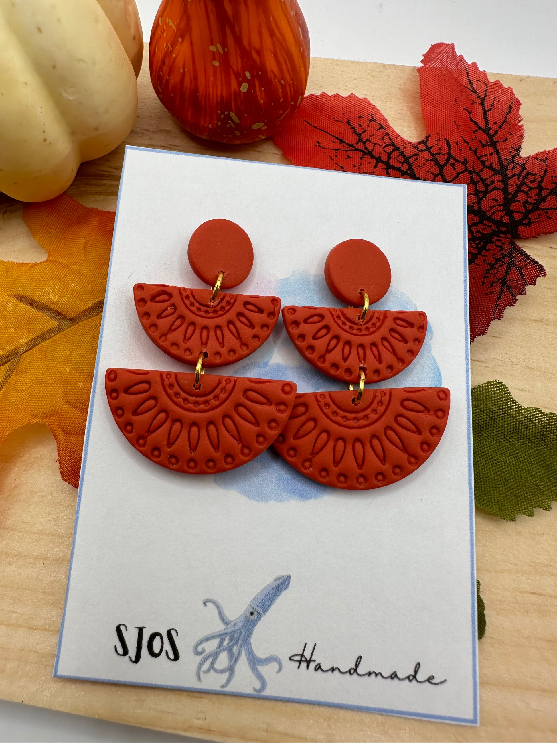Lightweight polymer clay three piece dangle with print, stud back with butterfly clasp